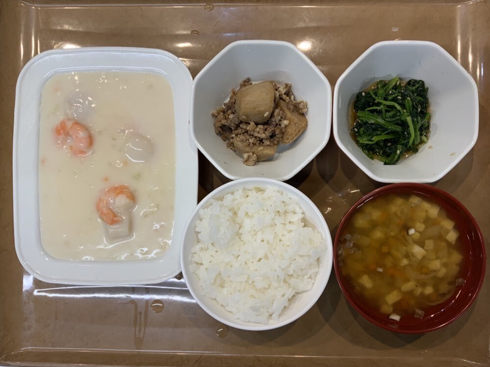 9月昼食「奥三河鶏モモとさつまいもシチュー」