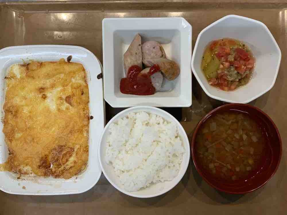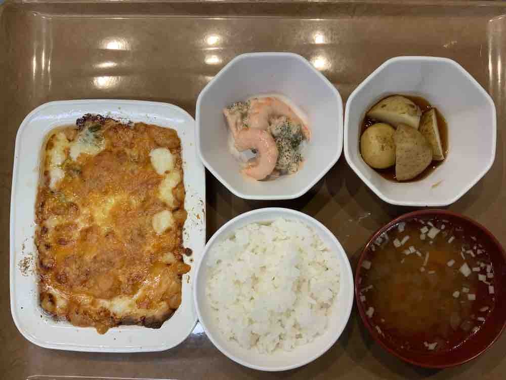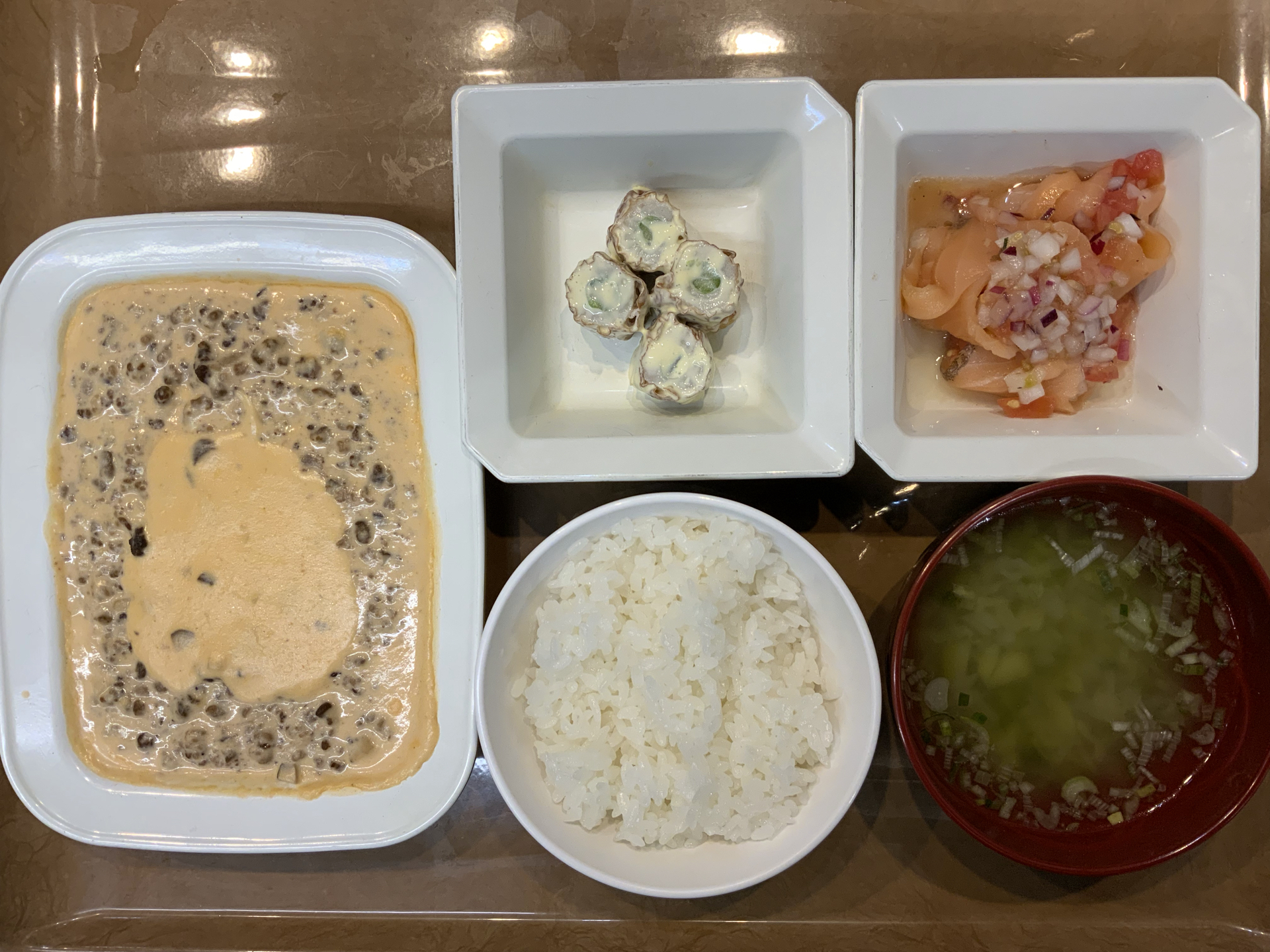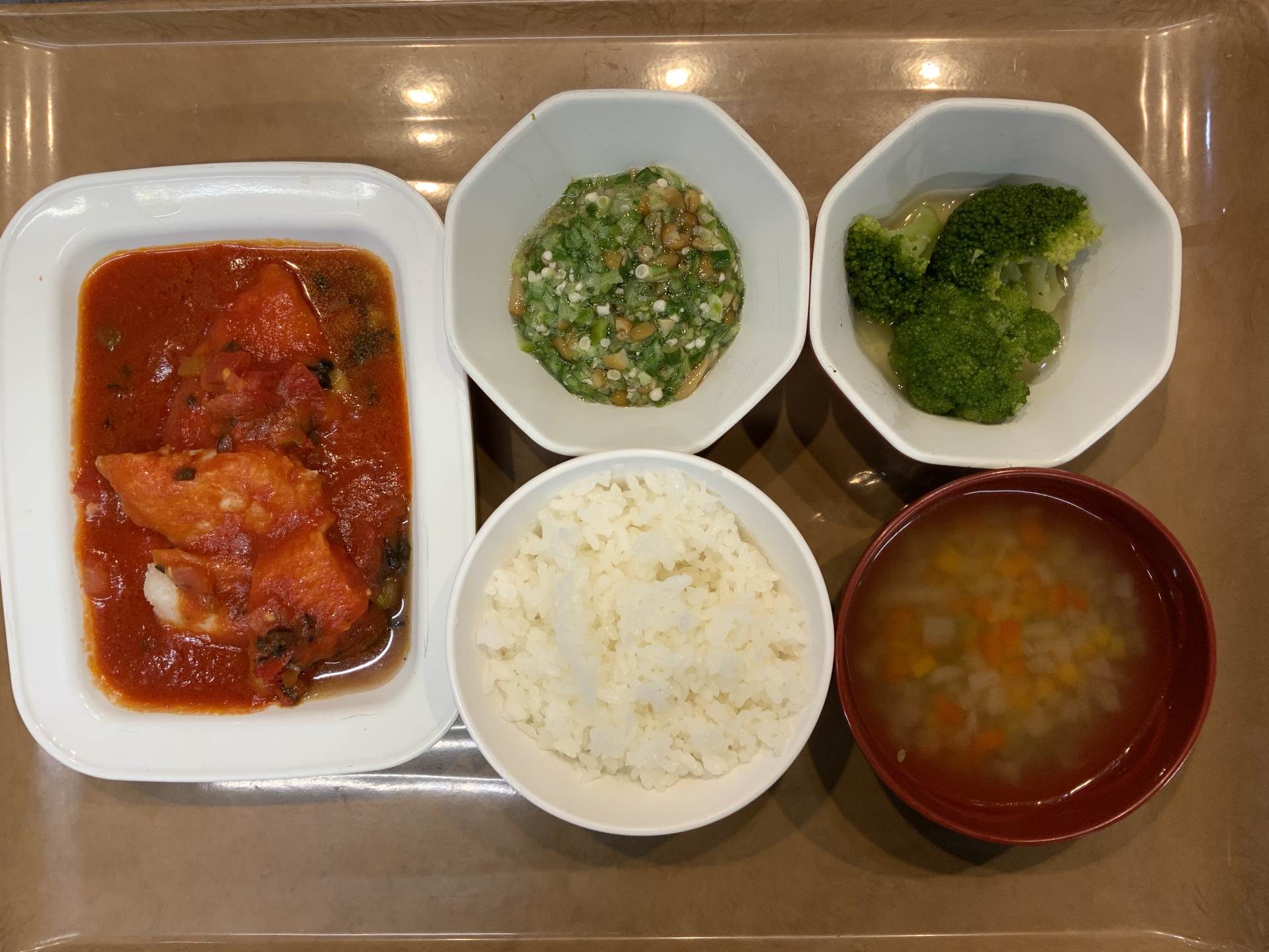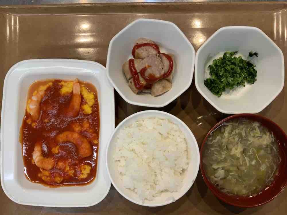 5月昼食「ふわふわスクランブル海老トマトソース」