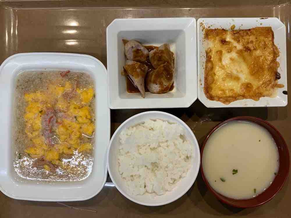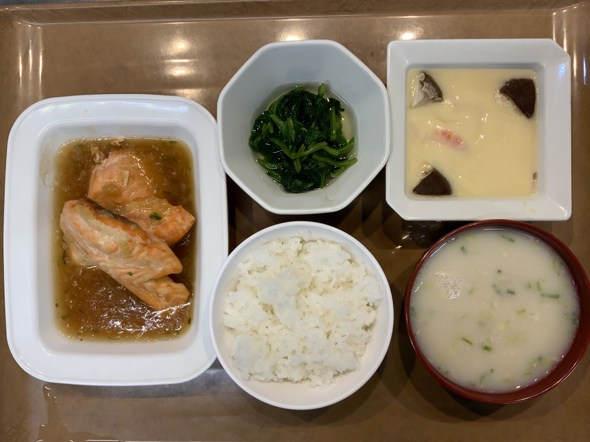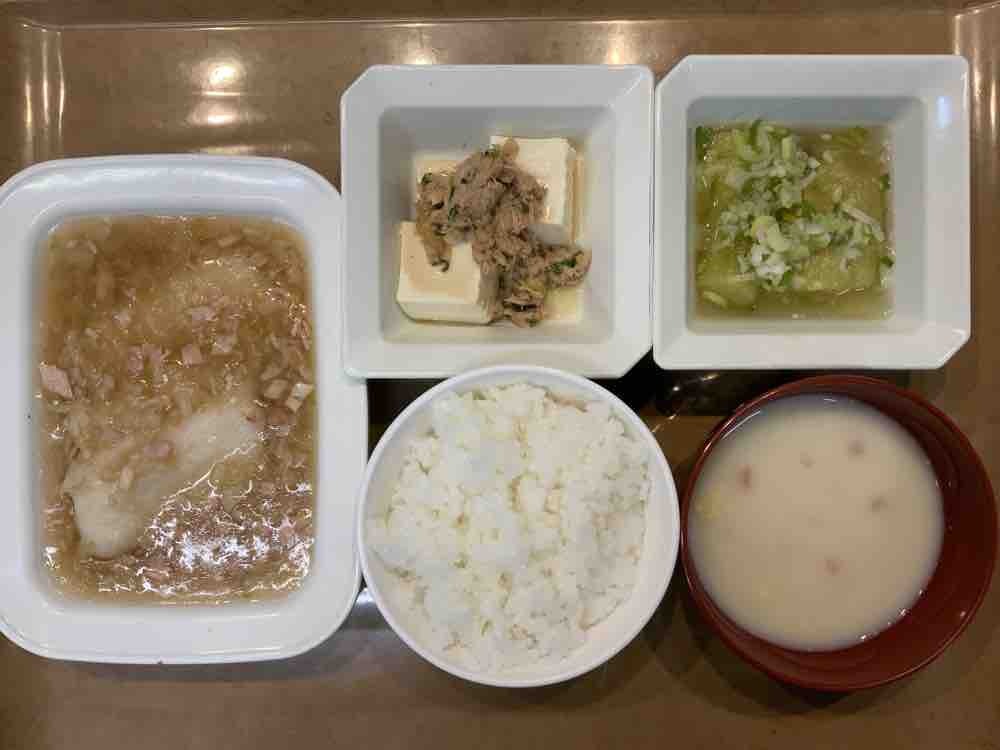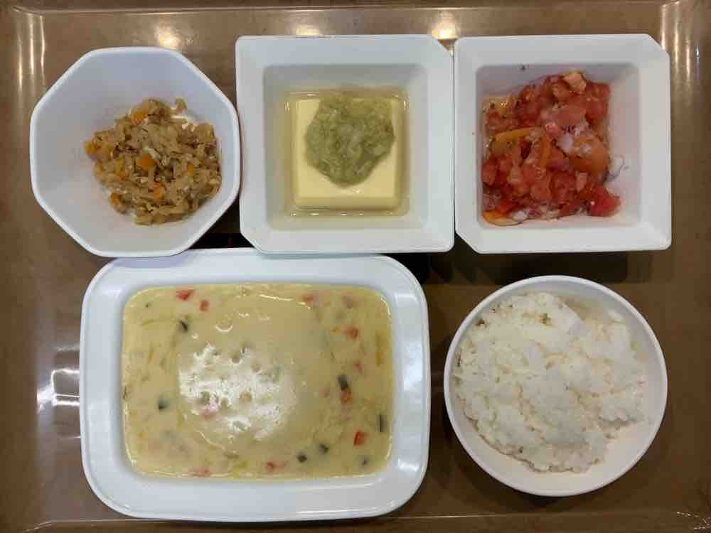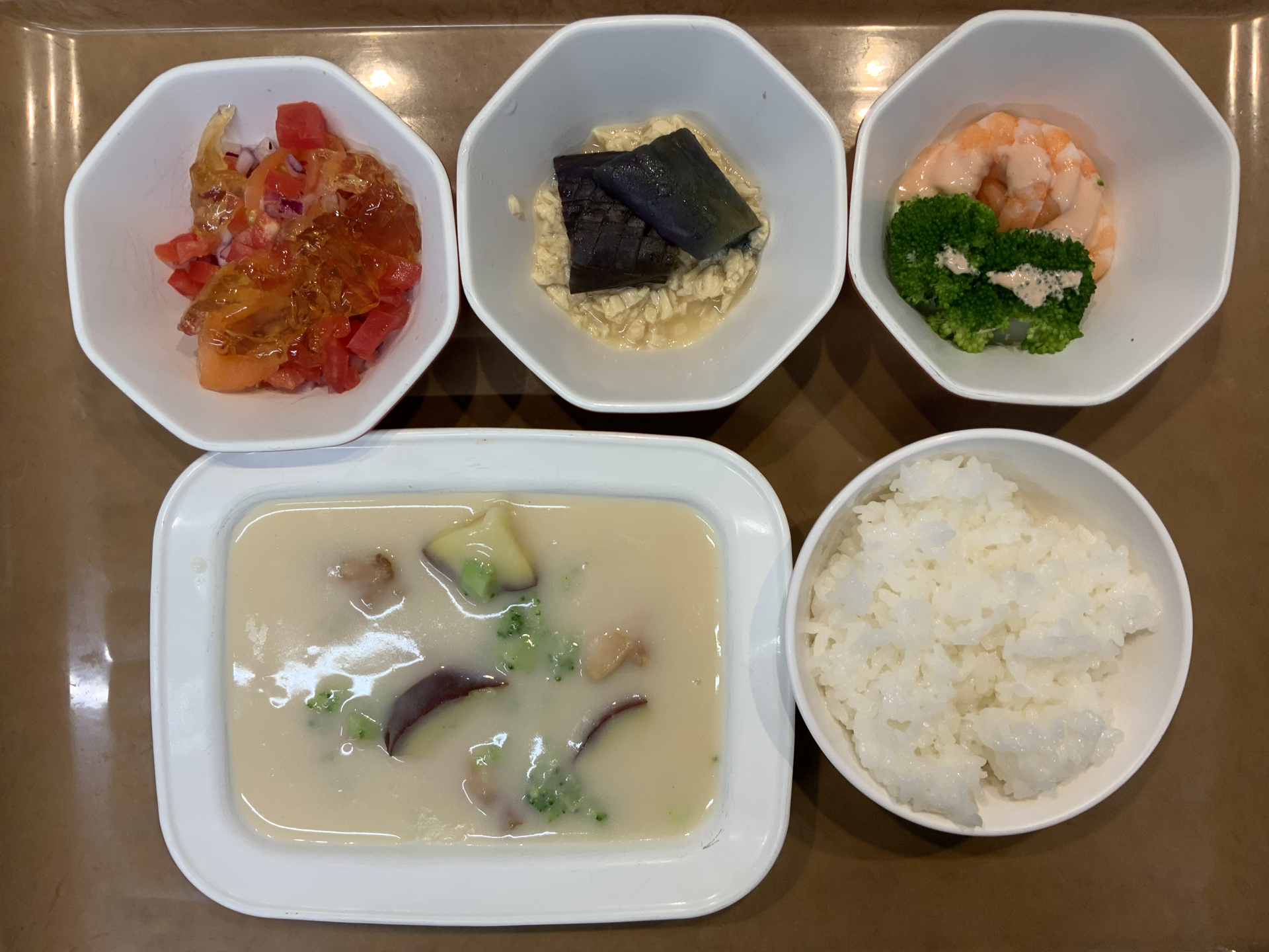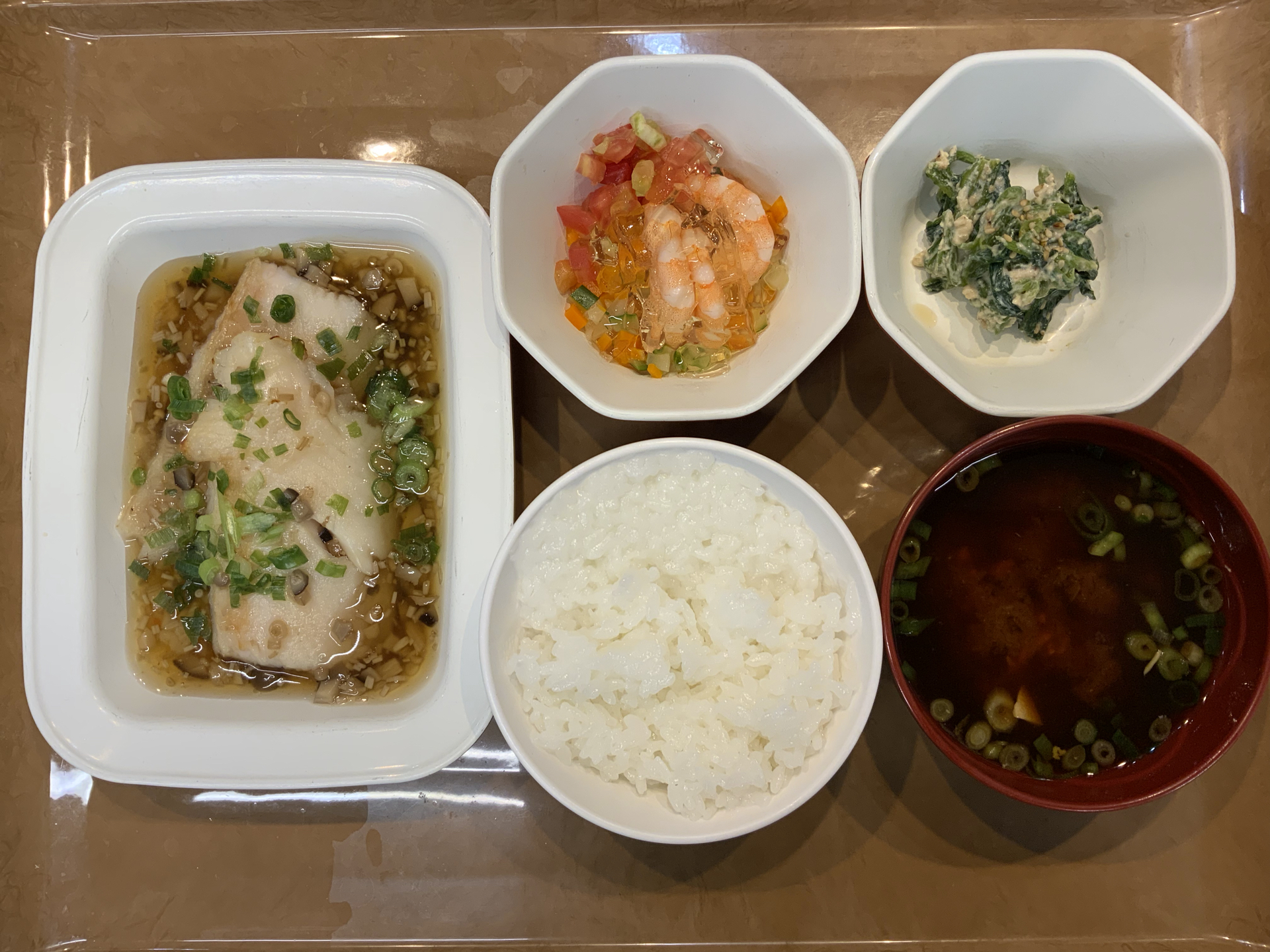 6月昼食「スクランブルエッグカニ身和風あんかけ」