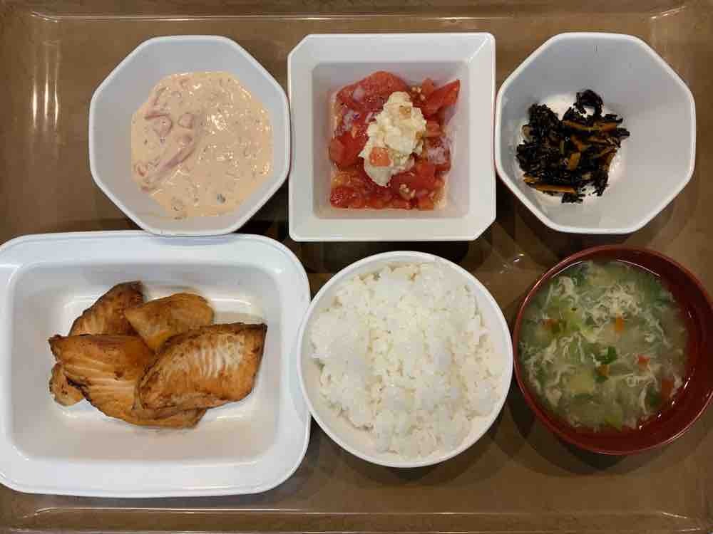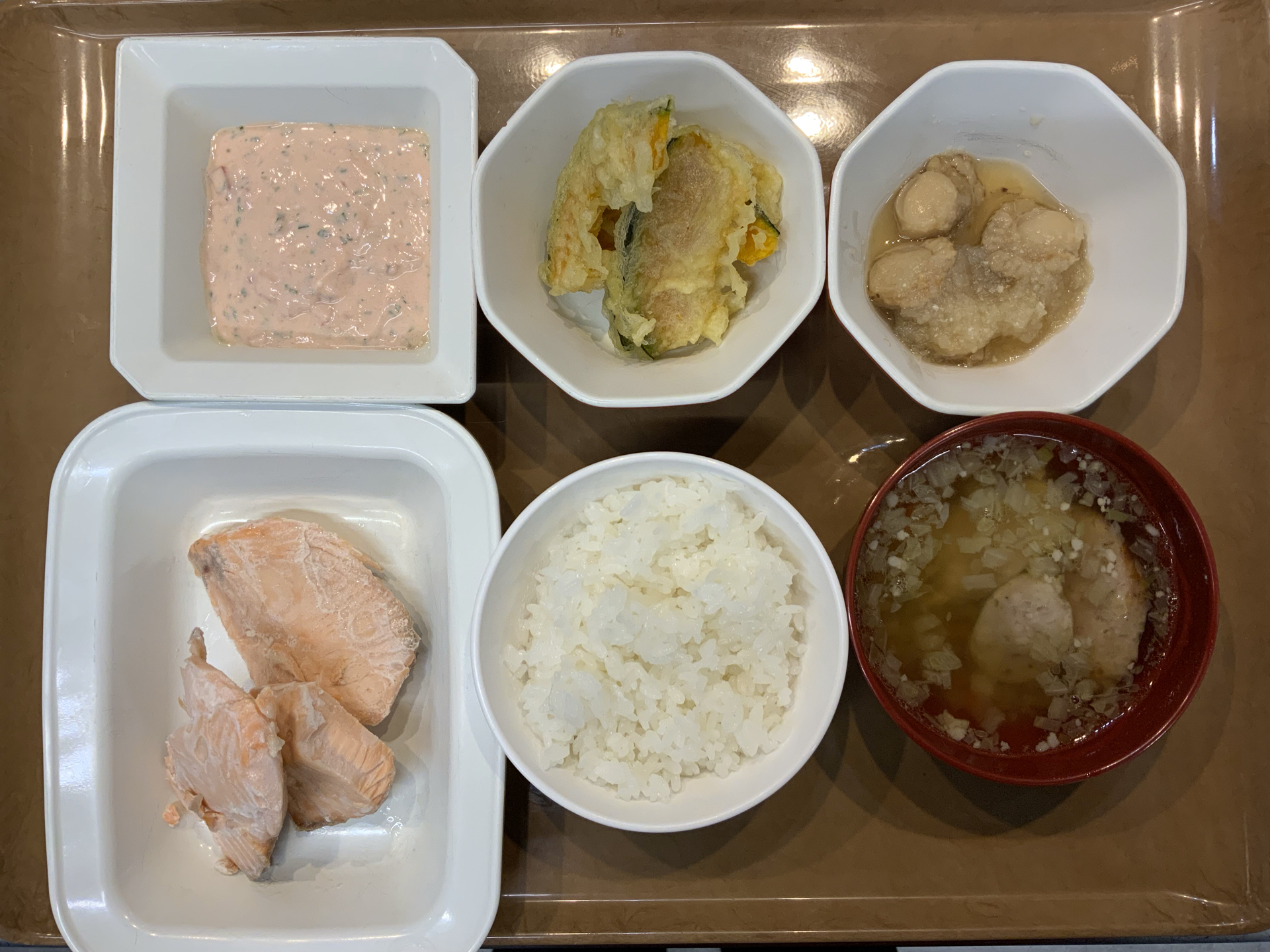 8月昼食「サーモンブイヨン煮 ヨーグルトエストラゴン」