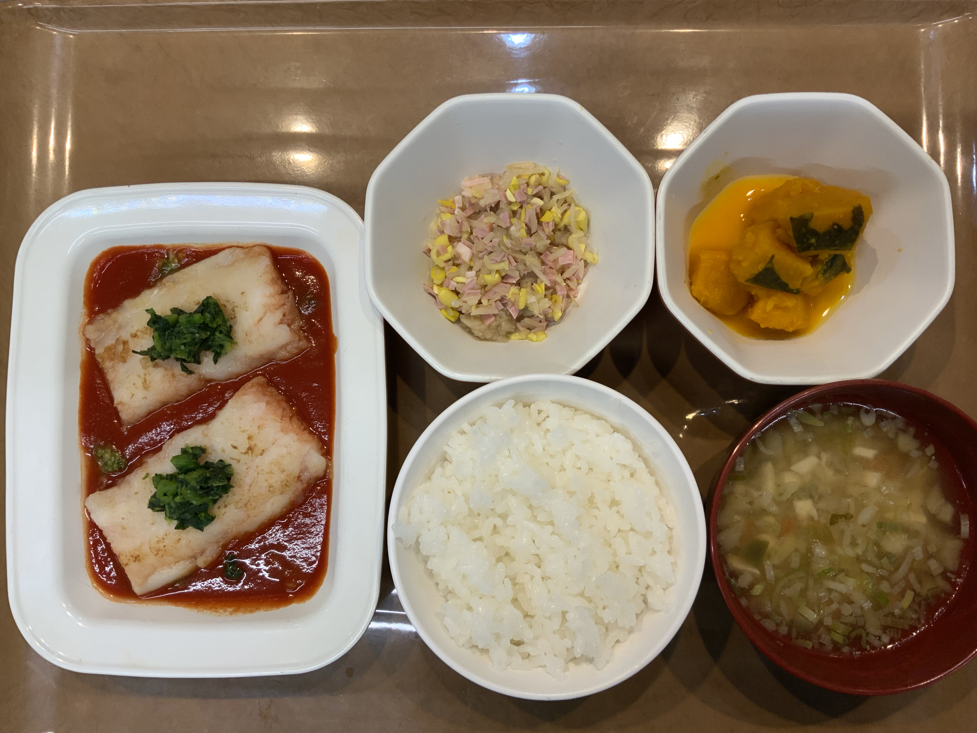 8月昼食「白身魚キャベツベーコンブレゼ」