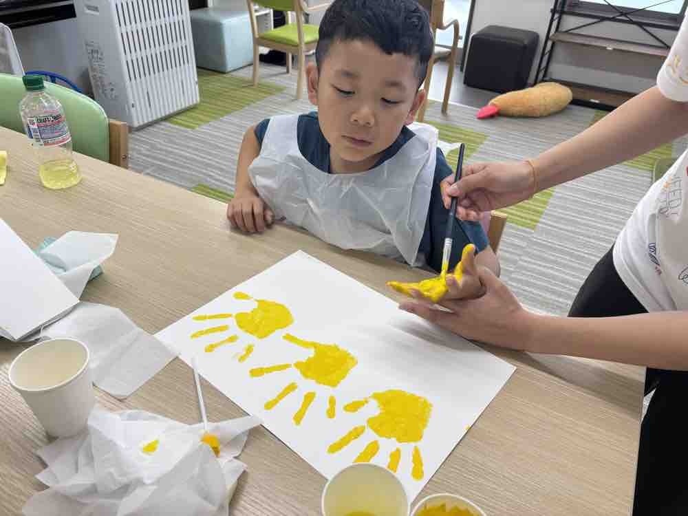 うちわを作ろう 手形をペタッ✌