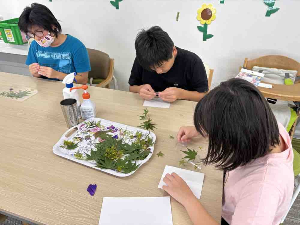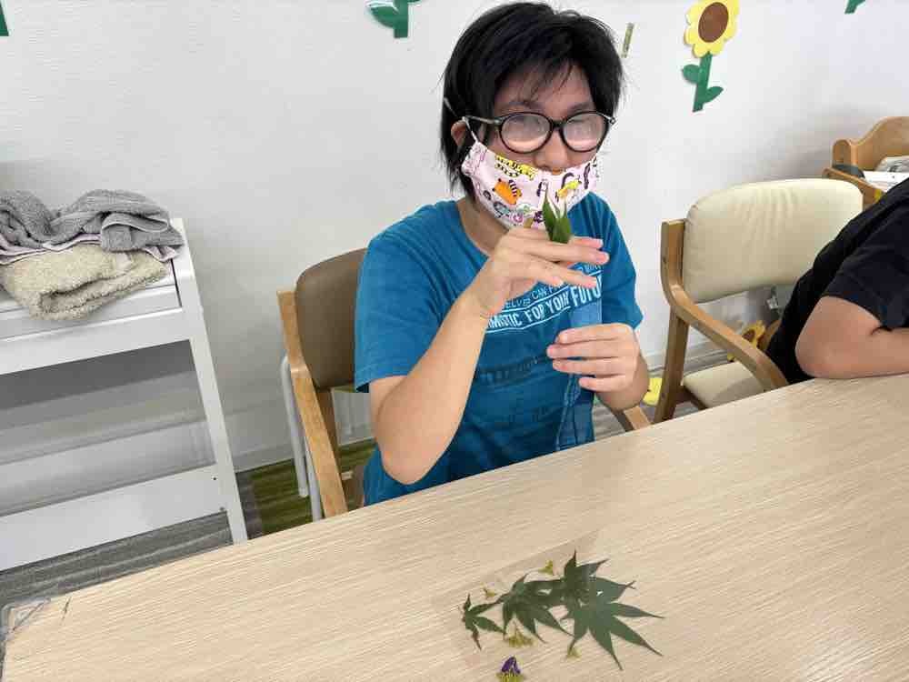 葉っぱでしおり作り🍃